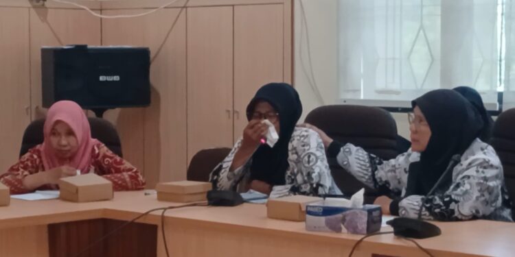 Saat rapat berlangsung, spontan tangis tangisan sejumlah guru menyayst hati.