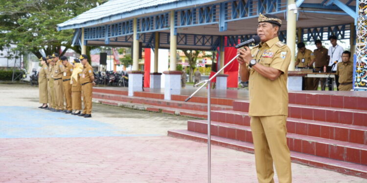 TANJUNG SELOR – Gubernur Kalimantan Utara (Kaltara), Dr. H. Zainal A. Paliwang, S.H., M.Hum memimpin apel pagi gabungan di lingkup Pemerintahan Provinsi (Pemprov) Kaltara di Lapangan Agatis, Senin (1/9/25).