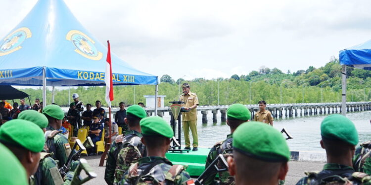 TARAKAN – Gubernur Kalimantan Utara (Kaltara), Dr. H. Zainal A. Paliwang, S.H., M.Hum menjadi Pembina Upacara Penyambutan Purna Tugas Satuan Tugas (Satgas) Kewilayahan Papua Yonif 614/Raja Pandhita berlangsung di Dermaga Kodaeral XIII/Tarakan, Selasa (16/9).