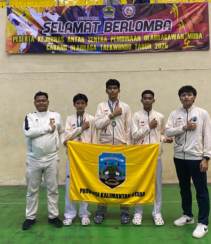 SEMARANG – Pelaksanaan kejurnas antar Sentra Pembinaan Olahragawan Muda( SPOM ) Pusat Pendidikan dan Latihan Pelajar ( PPLP), hasil akhir Atlet Provinsi Kalimantan Utara (Kaltara) dari cabang olahraga (cabor) Taekwondo berhasil meraih 1 medali emas, 2 medali perak di dalam ajang kejuaraan Tingkat Nasional Tahun 2025 di Semarang, Jawa Tengah, Minggu (20/10).