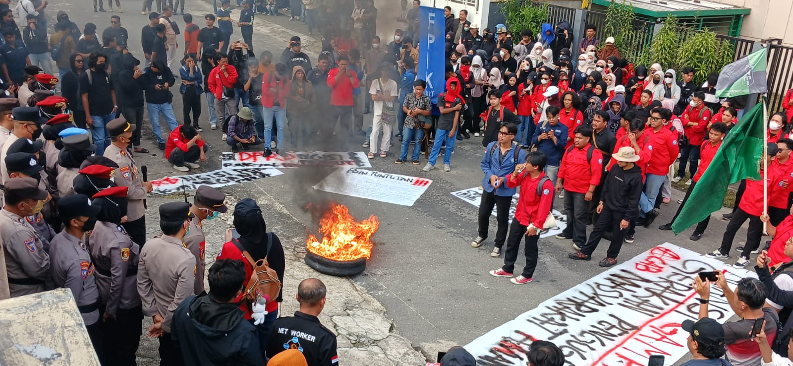 “Kami datang ke kantor Dewan Pengkhianat Rakyat. Kami minta masuk untuk berdialog dan menyampaikan aspirasi secara langsung,” teriak Anhar di tengah kerumunan massa.